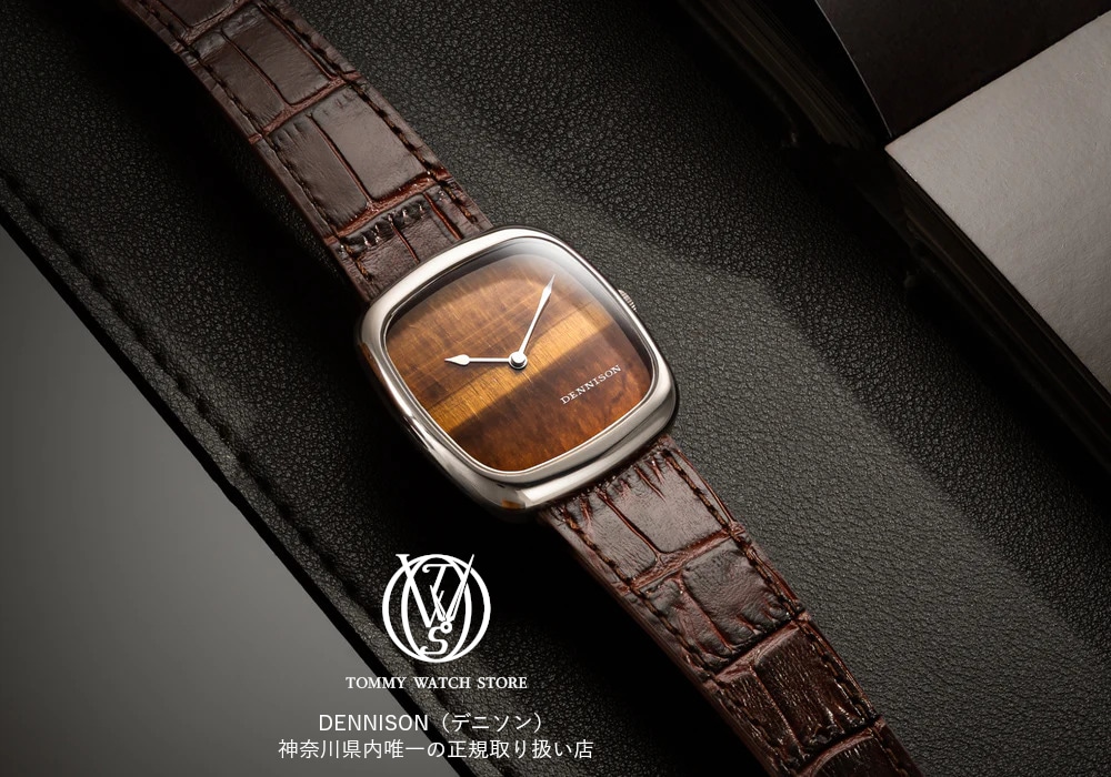 ケースメーカーとして設立されたデニソンを象徴するクッション型ケースに、ユーティリティなクォーツムーブメントを搭載し、天然石や自然素材を活かした美しい文字盤をもつ腕時計を主軸としています。